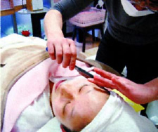 30代前後の女性会社員を中心に、仕事を終えた後の夜の時間帯が人気という。スーツを脱ぎ、ガウンに着替えてメーク落としのマッサージを受けた後、日本かみそりを丁寧に動かして顔のうぶ毛を剃ってもらう。剃るのに1時間、マッサージに1時間、うぶ毛と無駄な角質がなくなった肌は剃る前と比べ、明るく輝く。その差は歴然だ。